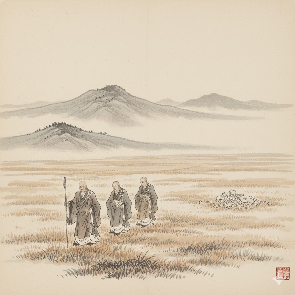 어느 날 사명대사가 두 제자와 함께 길을 가다가 커다란 구렁이 뼈를 발견했습니다. 대사는 첫째 제자에게 말했습니다.